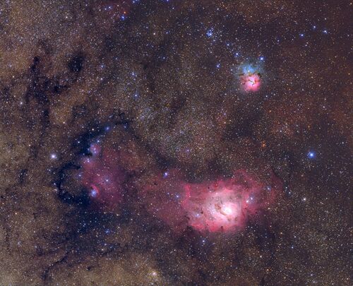 今月の撮影、蔵王はコマクサ平へ。そーなのかー氏と一緒です。 結果! 1.定番構図のM8,M20 and NGC6334 2.旧カミソリマクロで天の川中心部 撮影後記 蛇足(後日追記) 結果! 1.定番構図のM8,M20 and NGC6334 SHARPSTAR15028HNTとASI2600MC-proの組み…