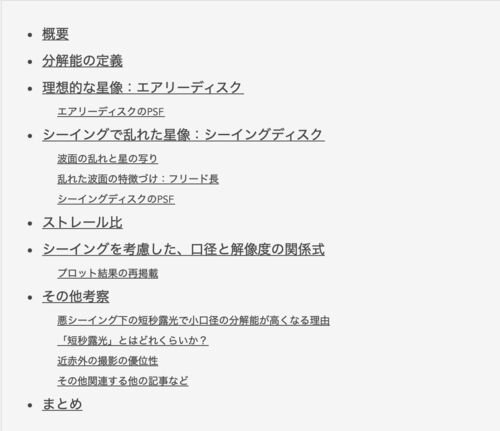 概要 分解能の定義 理想的な星像:エアリーディスク エアリーディスクのPSF シーイングで乱れた星像:シーイングディスク 波面の乱れと星の写り 乱れた波面の特徴づけ:フリード長 シーイングディスクのPSF ストレール比 シーイングを考慮した、口径と解像度…